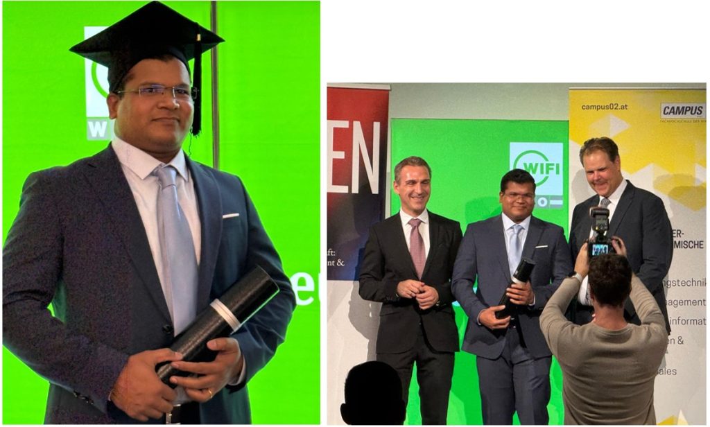P. John Bosco Joseph SP feierte im Oktober in Graz seine Graduierung zum Master of Business Administration (MBA). Zwei Jahre lang hatte er neben seinen Aufgaben im Orden, in Kindergarten/Schule und in der Pfarre Maria Treu mit großem Fleiß den Masterlehrgang Unternehmensmanagement an der FH Campus 02 absolviert. Für seine Masterarbeit mit dem Titel „Leadership und Personalführung in katholischen Privatschulen: Zusammenführung strategischer Elemente und christlicher Werte“ hat er u.a. Direktor:innen von 10 katholischen Privatschulen in ganz Österreich interviewt. Sein umfangreiches Wissen wird er in Zukunft in der Ordensprovinz Österreich einsetzen.