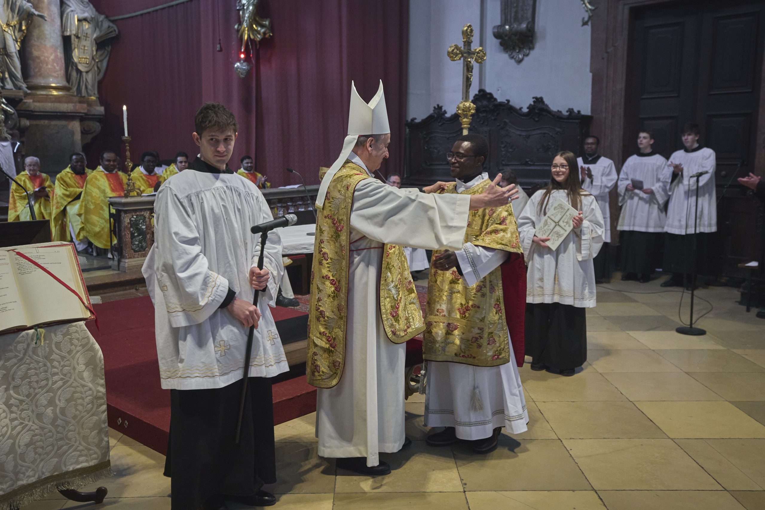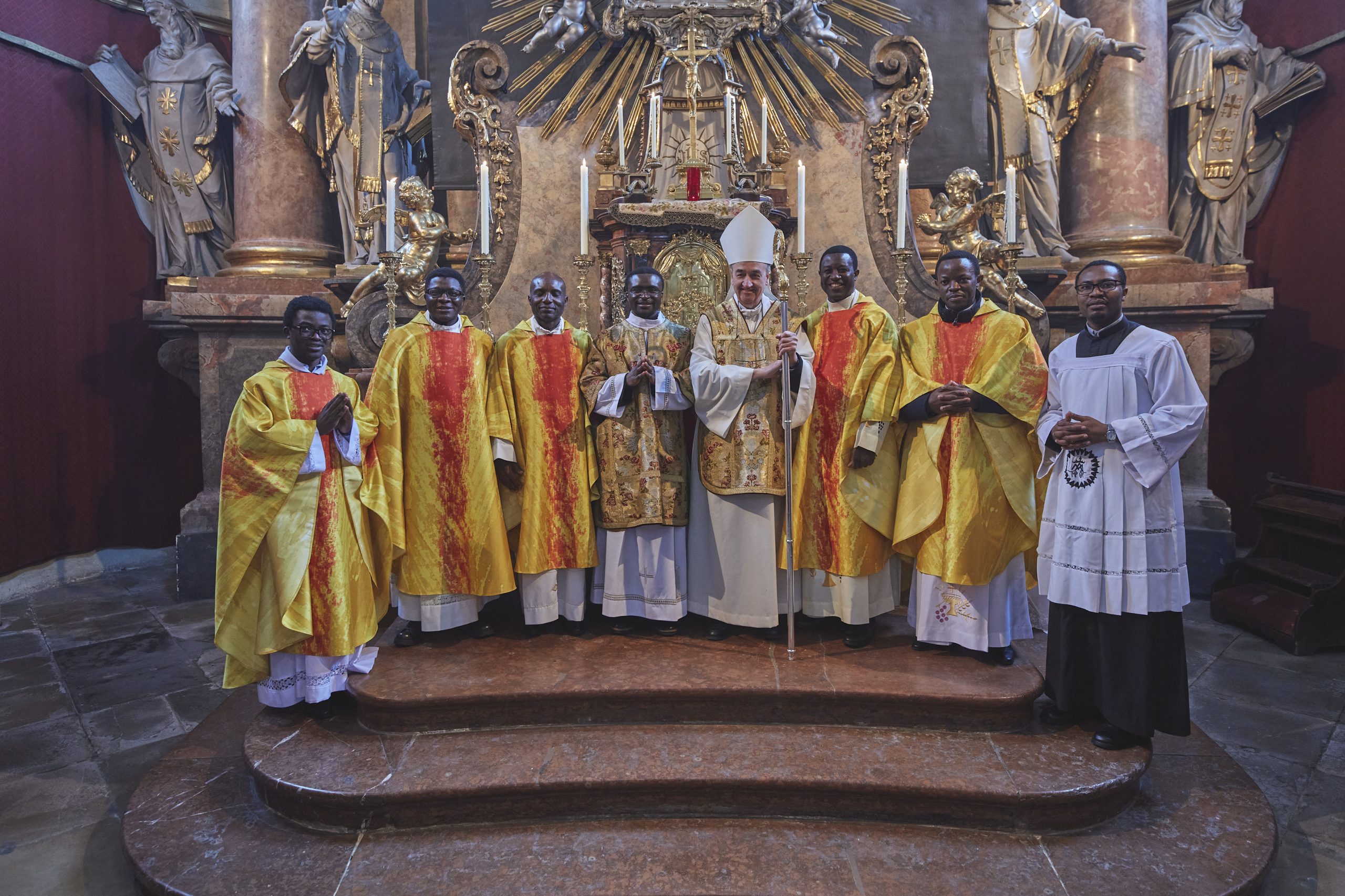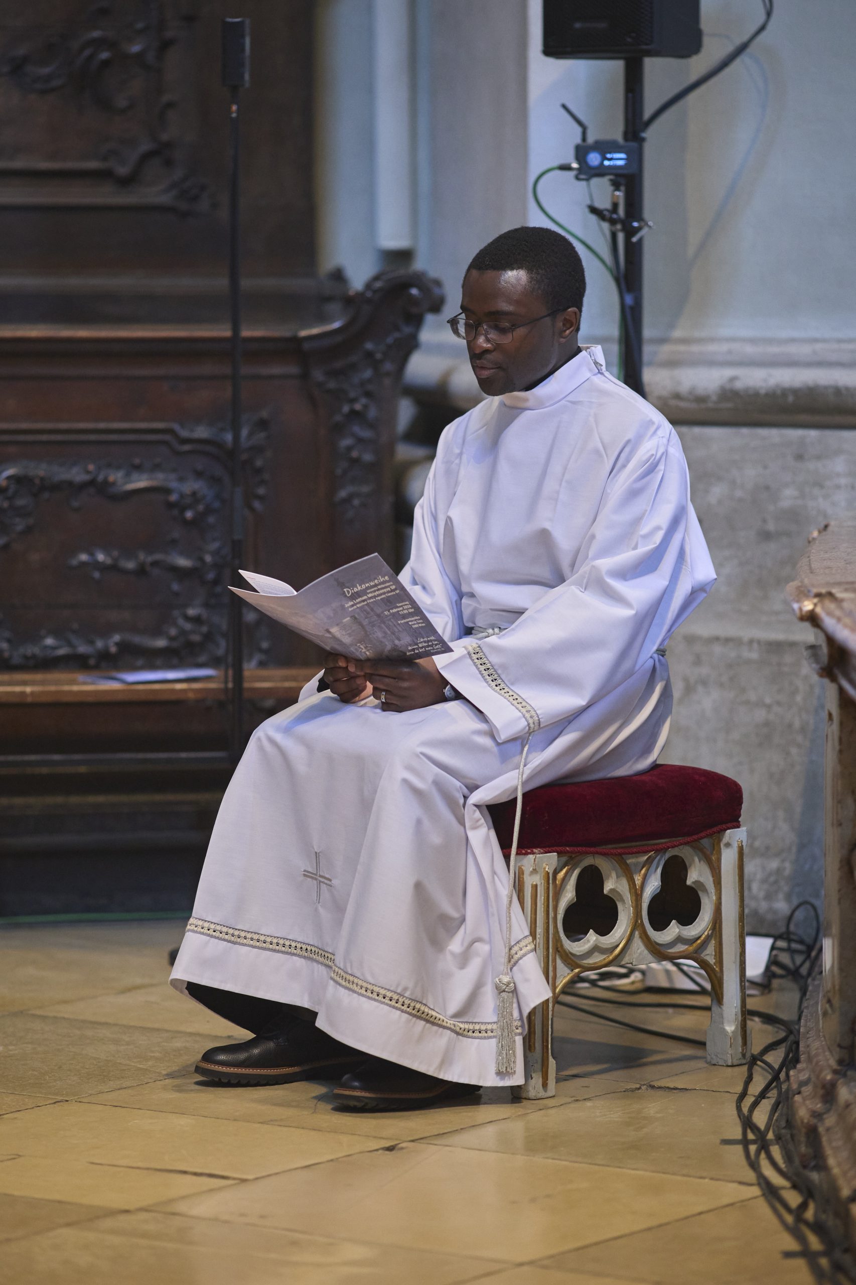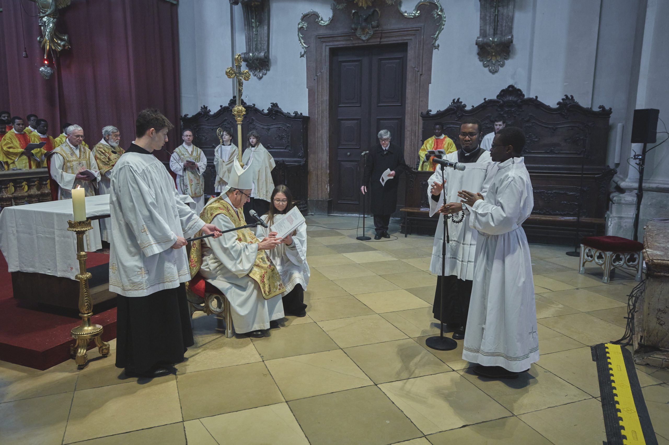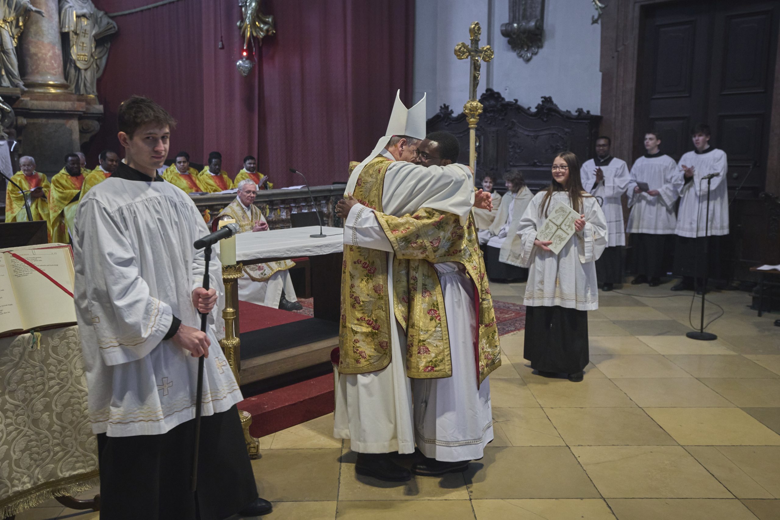 Am Samstag, den 21. Februar 2026 wurde Jude Lontum Mbiydzenyuy SP in der Piaristenbasilika Maria Treu von Bischof Pedro Aguado Cuesta SP, zum Diakon geweiht. Neben P. Zsolt Labancz SP, dem Piaristenprovinzial in Österreich, feierten 20 internationale Konzelebranten die Weihemesse mit, darunter P. Moses Kongmi, der Heimatprovinzial Lontums aus Zentralafrika, P. Alex Djousse´ SP, der Generalsekretär des Piaristenordens, P. Jacek Wolan SP, der Generalassistent für Europa und P. Clemens Pilar COp, der Generalprior der Kalasantiner. Die Messe wurde für Lontums Familie und Freunde und die weltweite Piaristenfamilie per Livestream übertragen.