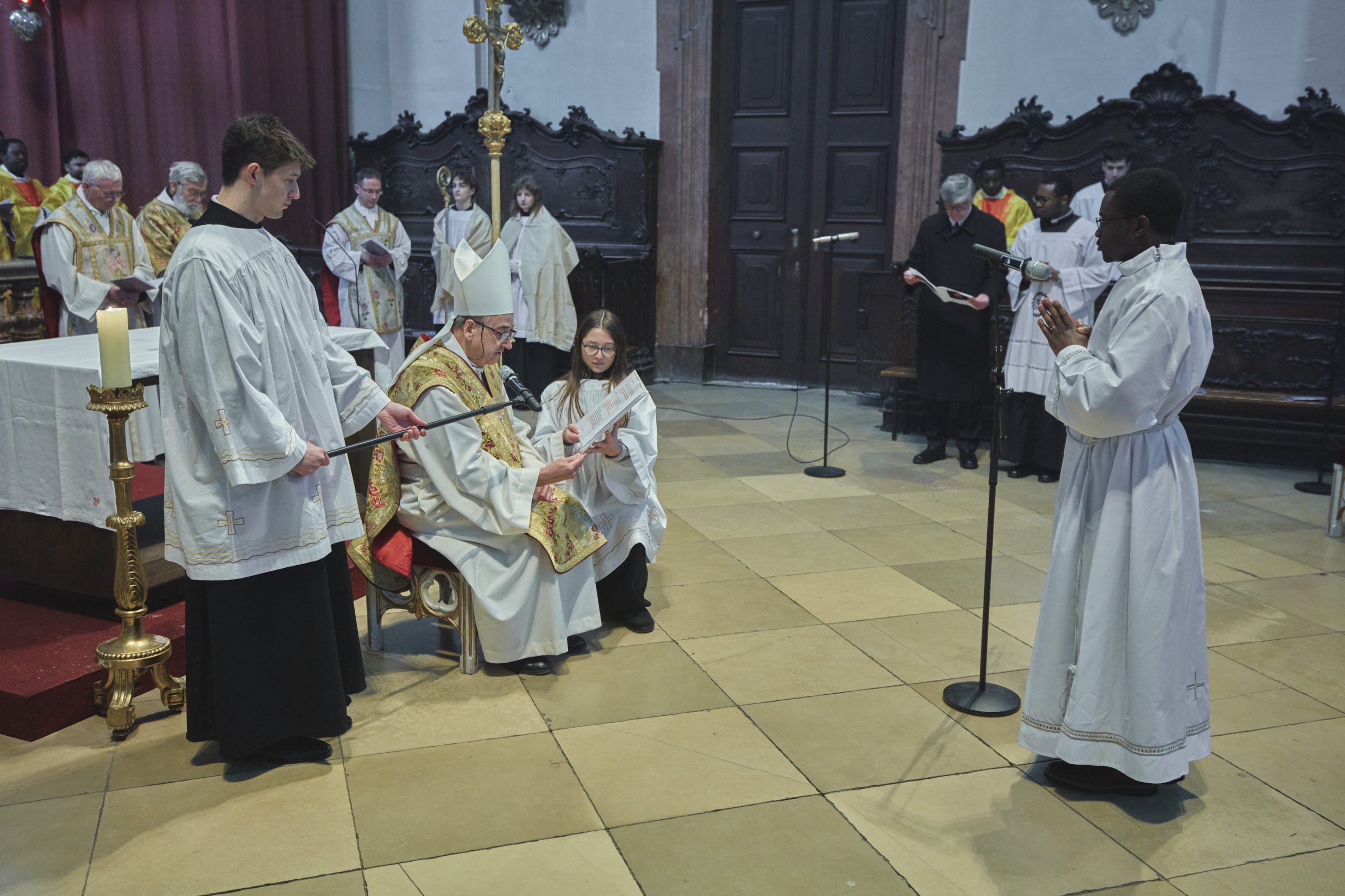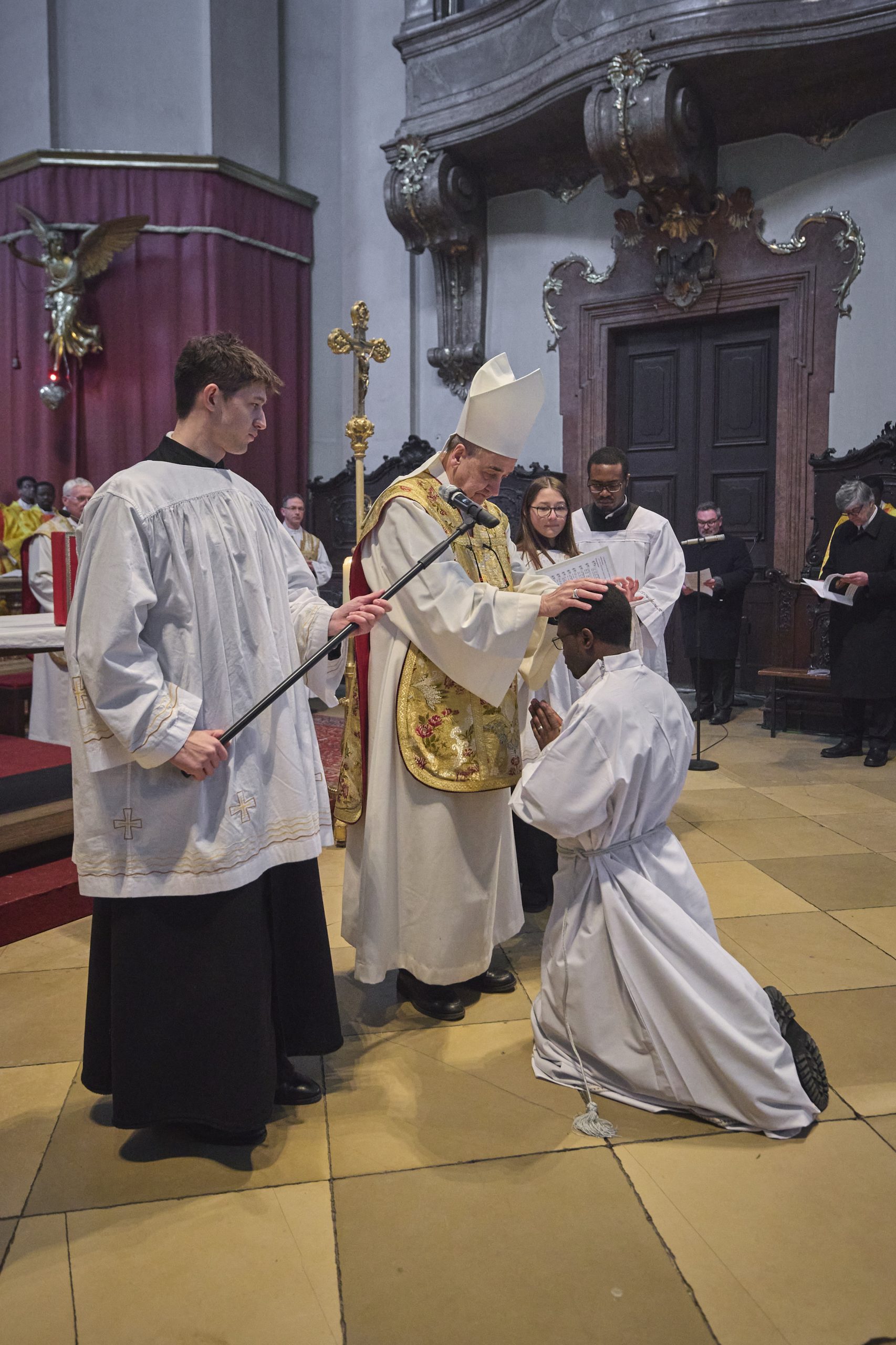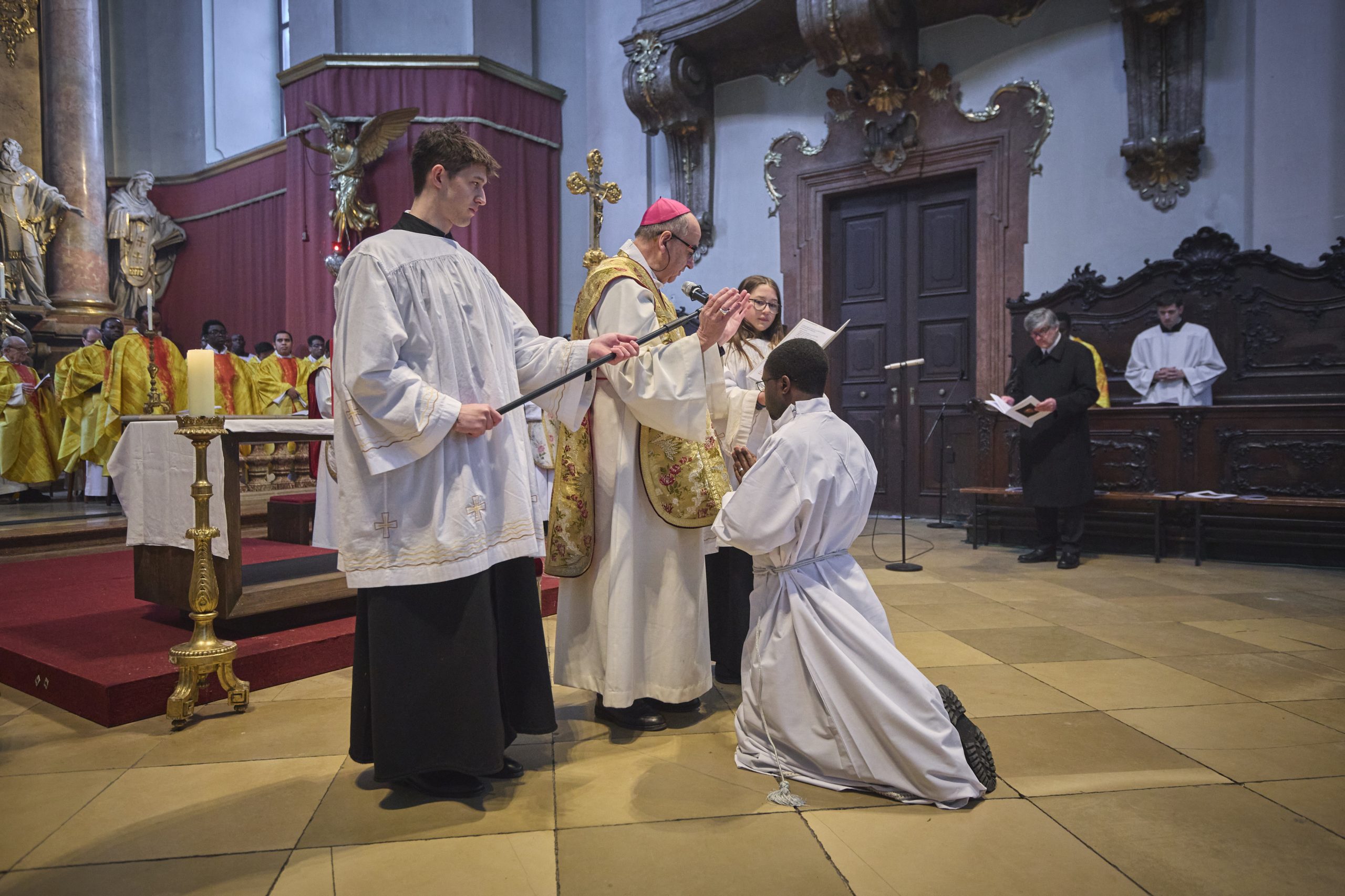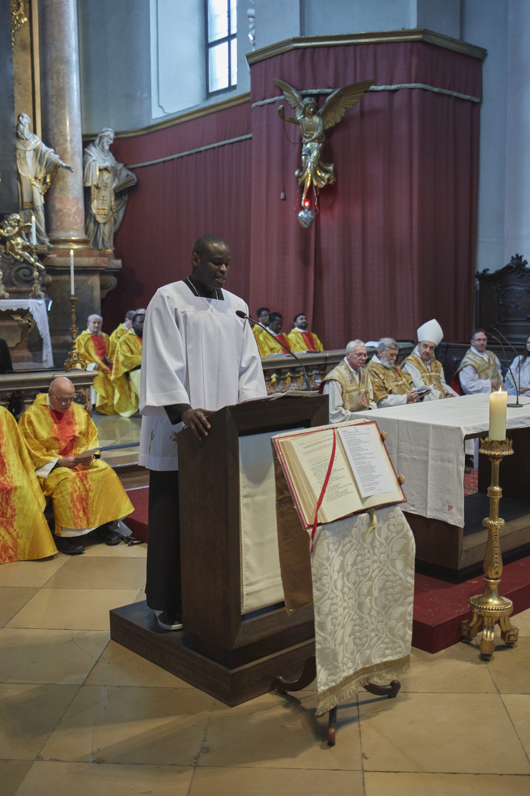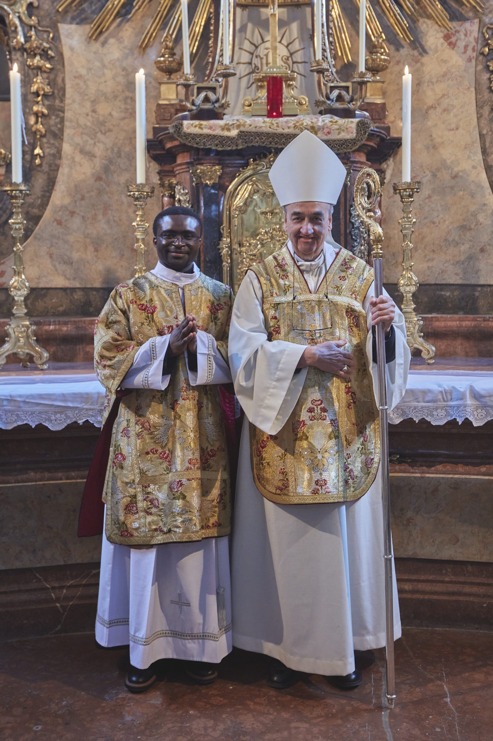 Am Samstag, den 21. Februar 2026 wurde Jude Lontum Mbiydzenyuy SP in der Piaristenbasilika Maria Treu von Bischof Pedro Aguado Cuesta SP, zum Diakon geweiht. Neben P. Zsolt Labancz SP, dem Piaristenprovinzial in Österreich, feierten 20 internationale Konzelebranten die Weihemesse mit, darunter P. Moses Kongmi, der Heimatprovinzial Lontums aus Zentralafrika, P. Alex Djousse´ SP, der Generalsekretär des Piaristenordens, P. Jacek Wolan SP, der Generalassistent für Europa und P. Clemens Pilar COp, der Generalprior der Kalasantiner. Die Messe wurde für Lontums Familie und Freunde und die weltweite Piaristenfamilie per Livestream übertragen.
