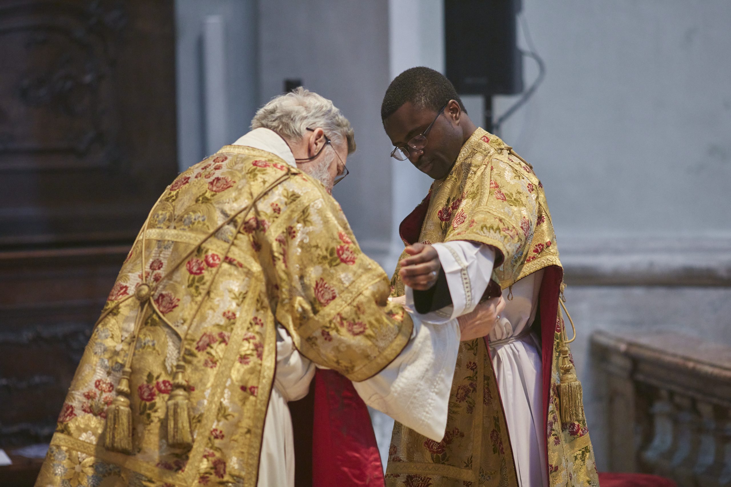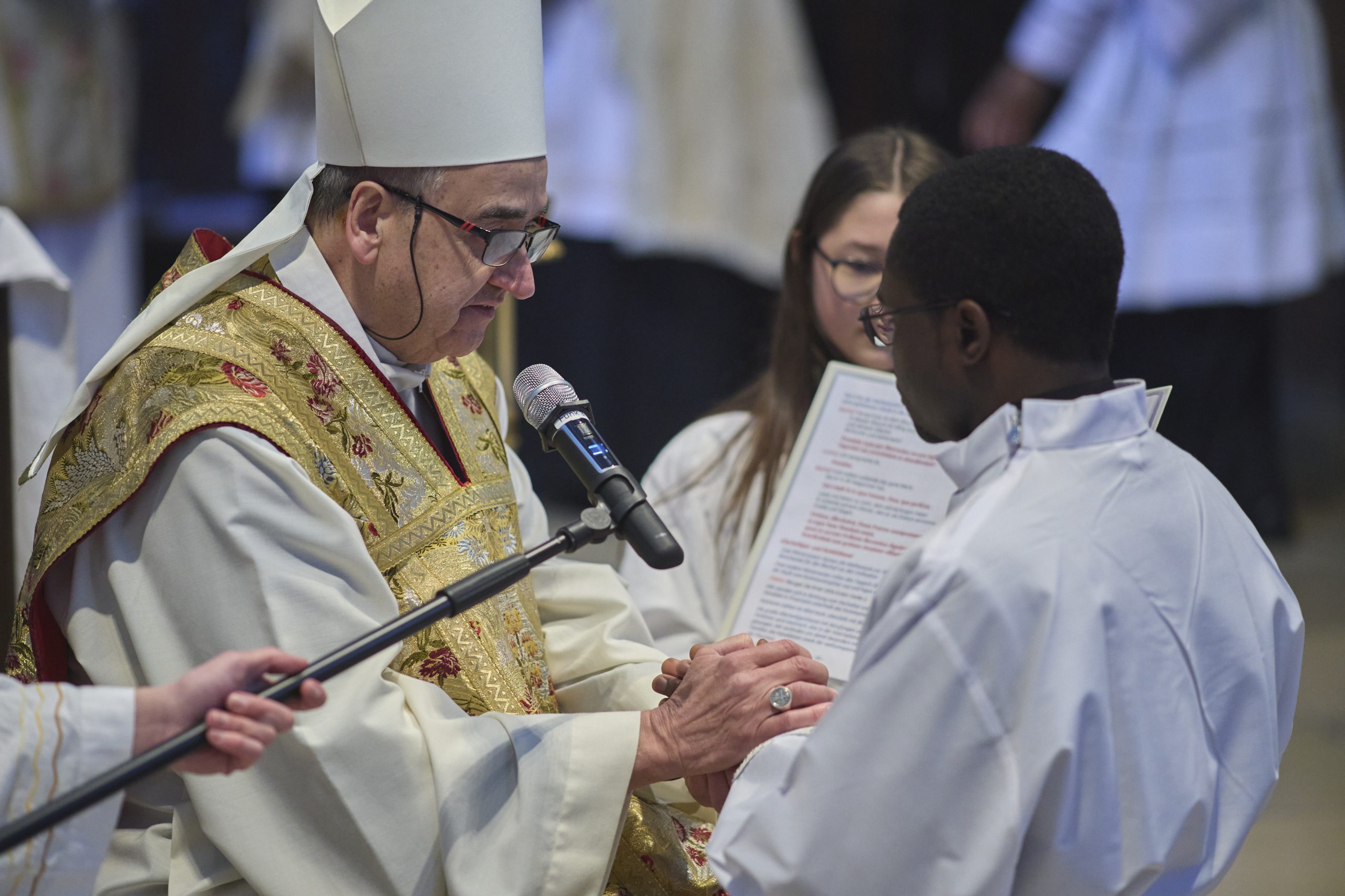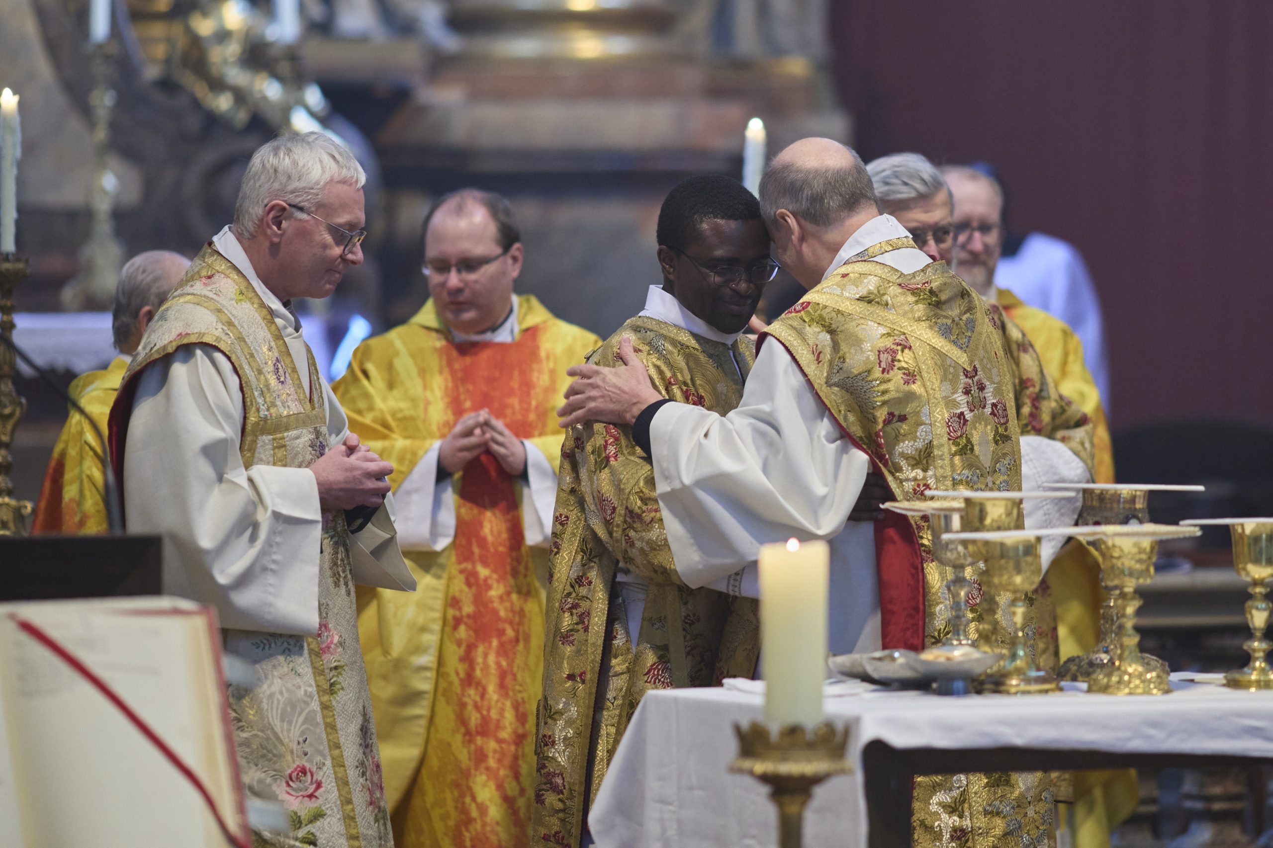 Das Weiheversprechen, die Weihe und der bischöfliche Segen – auf Lateinisch gesprochen – waren feierliche, emotionale und sehr authentische Momente. Diakon Gerhard Schmitt, bekleidete Lontum mit dem Diakonatsornat, Bischof Pedro umarmte den frischgeweihten Diakon wie ein stolzer Vater seinen Sohn. Bei der folgenden Eucharistiefeier durfte Lontum bereits seinen Dienst ausüben.